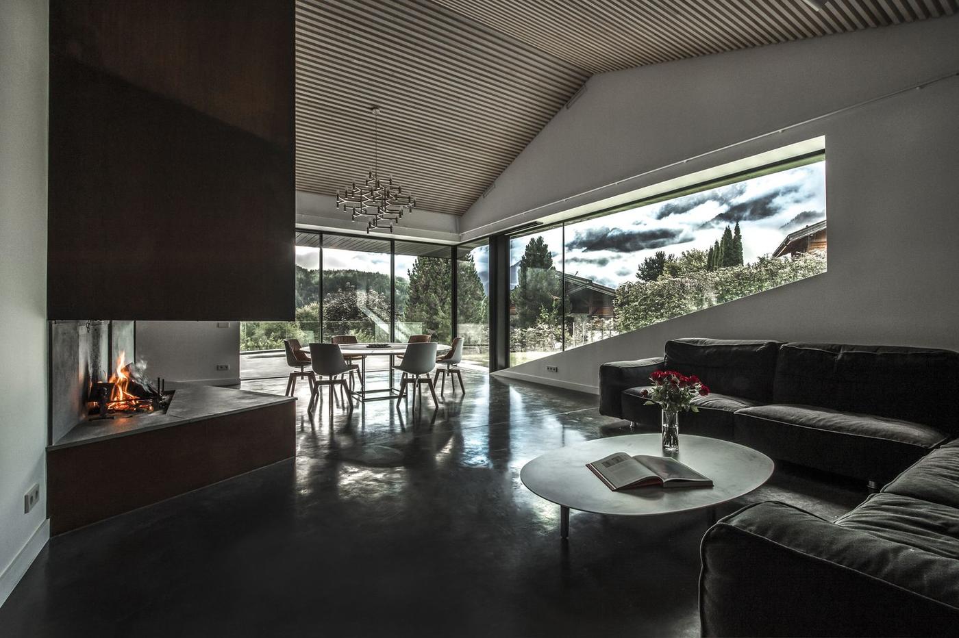 這個項目圍繞兩個主題進行設計:視野以及追求最大限度的太陽直射光。日影儀可以分析太陽對場地和建筑的影響。項目在現(xiàn)實場地的三維建模讓我們能夠精確地了解將會進入小屋的自然光強度,并從室內(nèi)感受勃朗峰的壯麗景觀。采用混合隔熱設計,房屋全部采用混凝土結(jié)構(gòu)和落葉松木地板覆層系統(tǒng)。