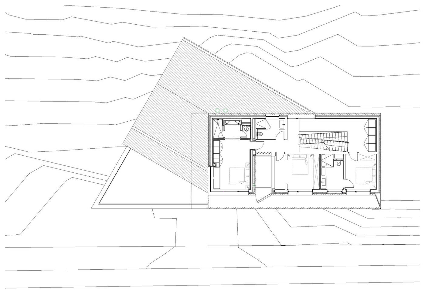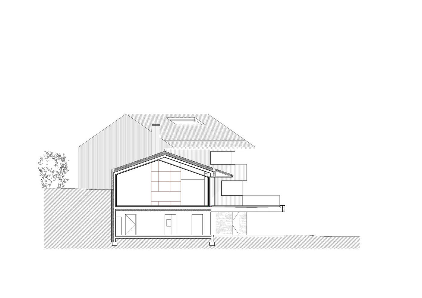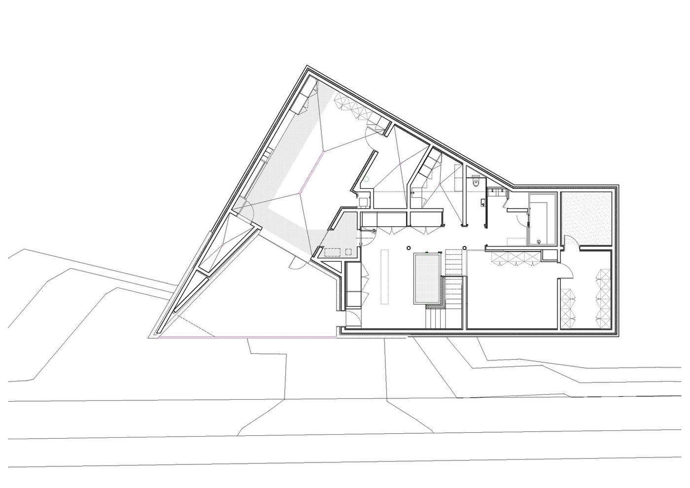應老客戶的要求,建筑師在夏蒙尼山谷設計了一座新的小屋,并監(jiān)督了它的建造過程。 其場地位于50年代建成的住宅區(qū)內(nèi)。從場地原始的總體規(guī)劃中可以看出這里以前也是一座小屋。