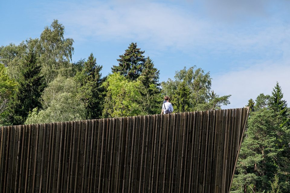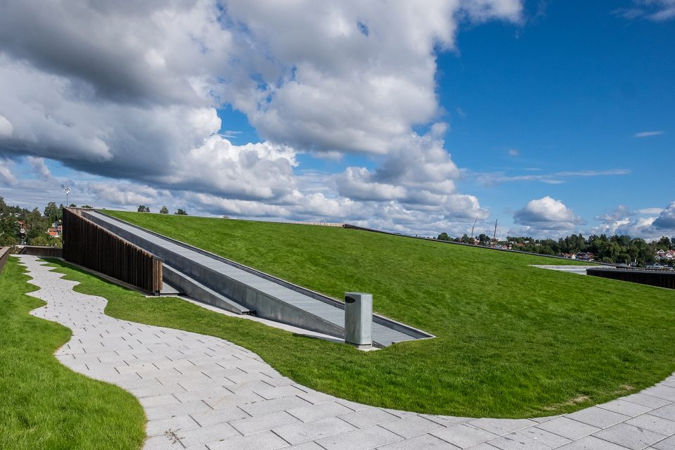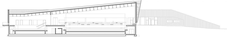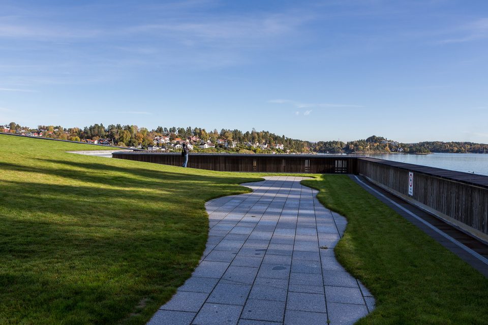 Holmen水上運(yùn)動中心位于Holmen海灘,這里經(jīng)過填海造陸,保護(hù)和鞏固了場地的自然屬性。整個場地被花園覆蓋,為海灘帶來非凡的美景。該項(xiàng)目旨在活化建筑的屋頂,使之成為海灘休閑區(qū)域的一部分。鋪滿植被的屋頂向南面傾斜,在Oslo fjord的群島和礁石之上形成連續(xù)不斷的景觀。主入口、接待處、更衣室和游泳池皆位于建筑的主樓層,凌駕于向建筑方向傾斜的草坪之上。低處的樓層則容納了體育館、多功能廳、設(shè)備間以及辦公設(shè)施等。