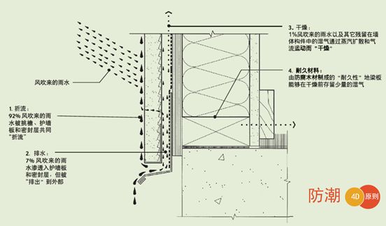 固有觀念認為,木材防蟲性能不佳,易被蟲蛀,其實不然,木材在經(jīng)過蒸氣干燥處理后性質(zhì)穩(wěn)定,木材的含水率在19%以下時,蟲子就不能存活。而用來建造木結(jié)構(gòu)房屋的木材的平均含水率只有15%,并且通過在地基處使用屏障系統(tǒng)——防腐材料可以進一步阻隔白蟻的入侵。再加上嚴格、獨特的施工技術(shù)能保證建筑材料的干燥,用高科技“呼吸薄膜”包裹木結(jié)構(gòu)建筑的外表面,使結(jié)構(gòu)中的濕氣能順利排出,又避免外界的雨水侵入內(nèi)部結(jié)構(gòu),木結(jié)構(gòu)完全是既能有效防潮、又是能呼吸的房子。