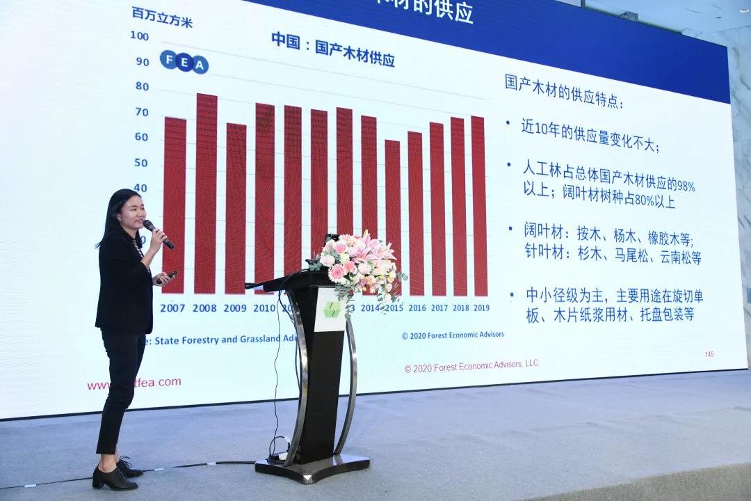 △ 美國林業(yè)經(jīng)濟顧問公司中國運營經(jīng)理郭丹女士發(fā)表主題演講