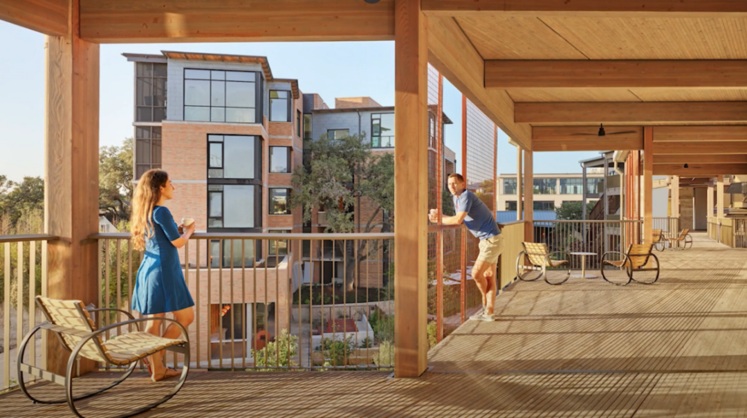 除此之外,還有其他幾處使用了定制的木結(jié)構(gòu)建筑構(gòu)件,其中包括 DLT 電梯和樓梯井、懸掛式陽(yáng)臺(tái)、樓梯以及入口處的獨(dú)立門(mén)廊。