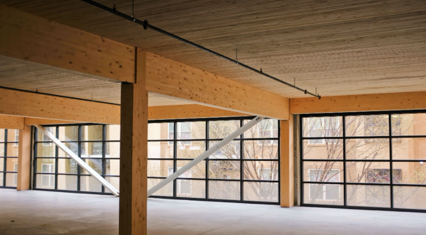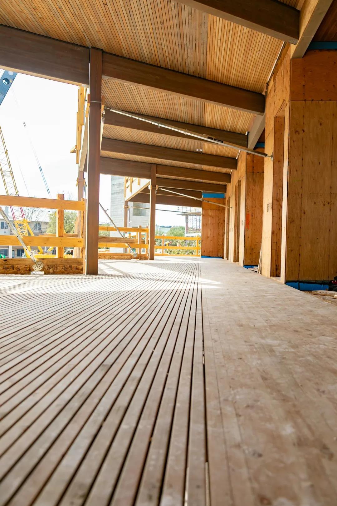 StructureCraft 在木材和材料工程方面擁有非常專業(yè)的知識(shí),結(jié)構(gòu)工程團(tuán)隊(duì)將內(nèi)部 SPF 、DLT 面板用到木質(zhì)走道的設(shè)計(jì)中,膠合木梁柱支撐了樓板。