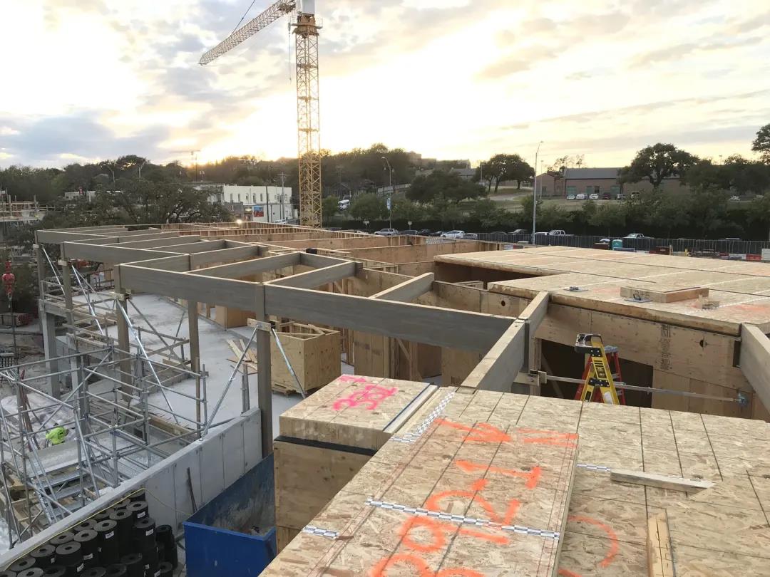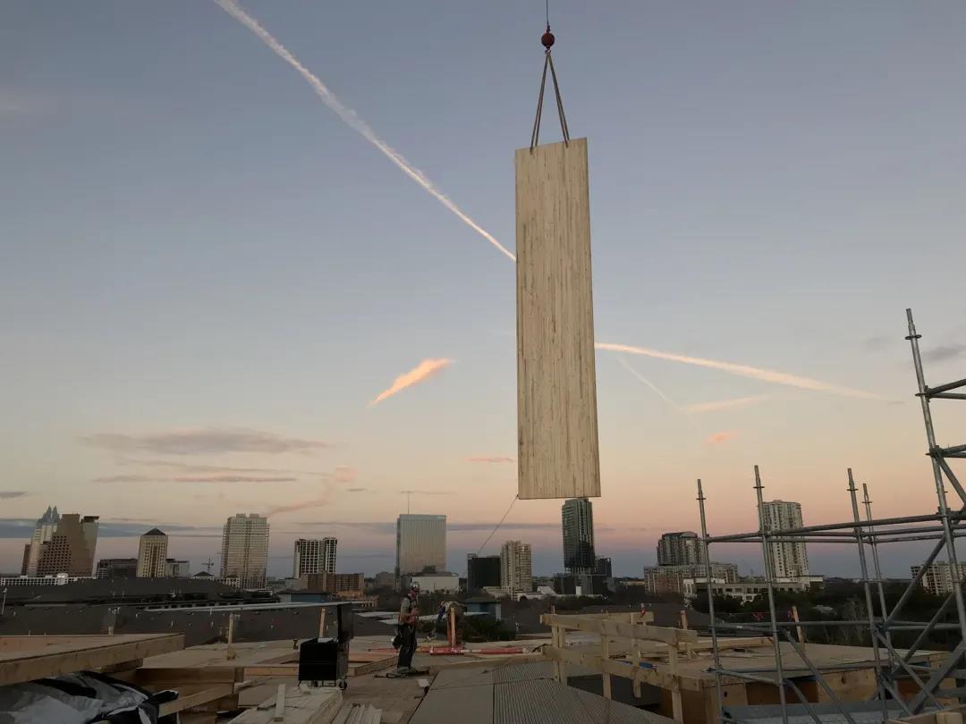 聲學(xué)設(shè)計(jì)也是早期設(shè)計(jì)階段的一個(gè)關(guān)鍵考慮因素。為了滿足 STC/IIC 等級(jí),在 DLT 面板上放置了隔音墊以及鋪設(shè)了3 英寸的混凝土層。為了打造良好的居住環(huán)境,設(shè)計(jì)團(tuán)隊(duì)為了減少側(cè)翼噪音,在立柱墻內(nèi)安裝了隔音條。