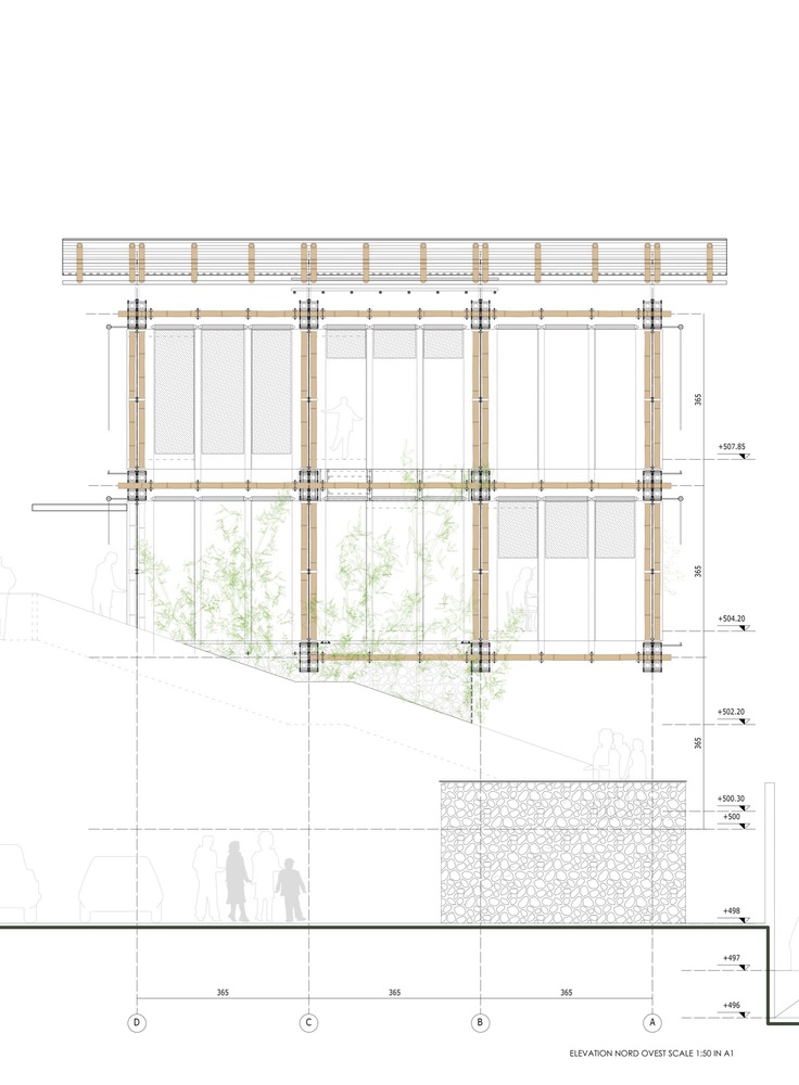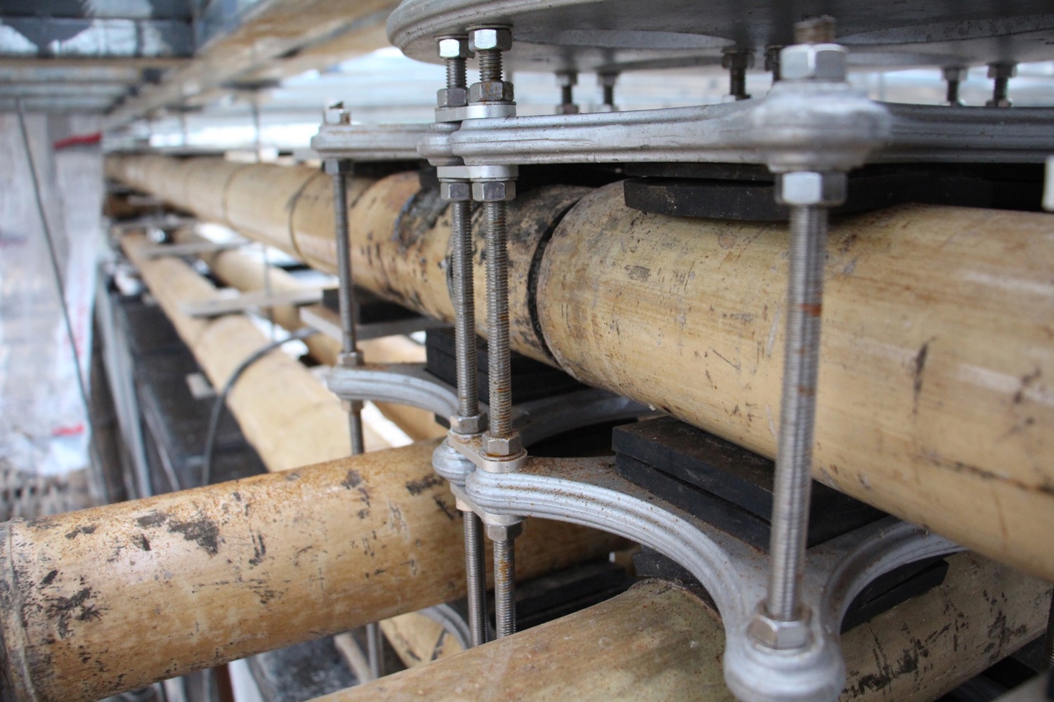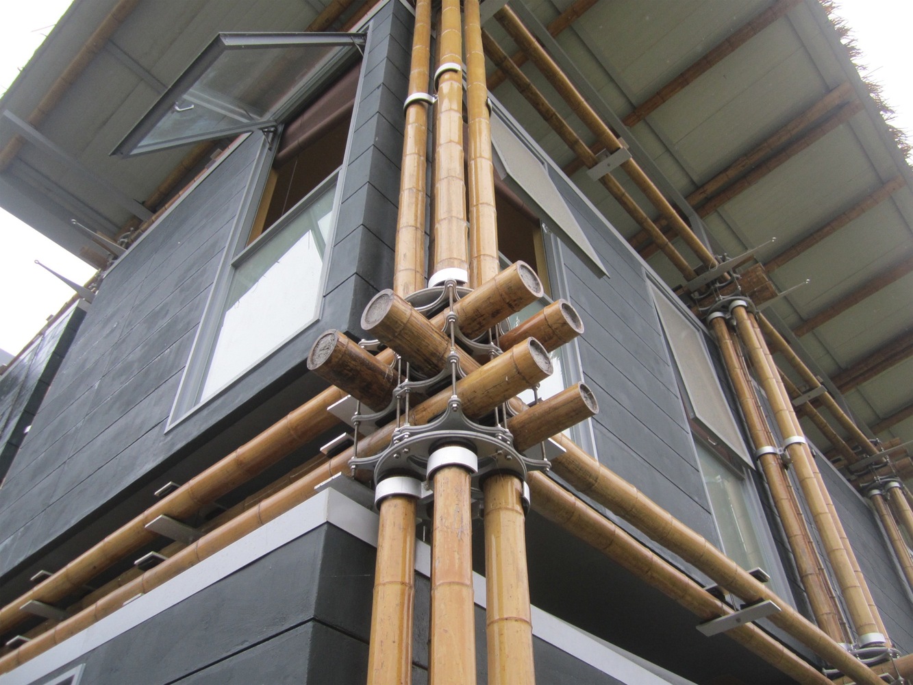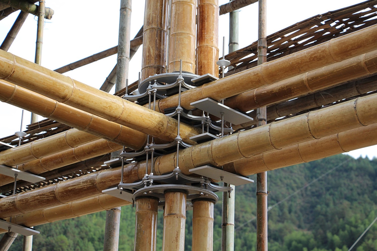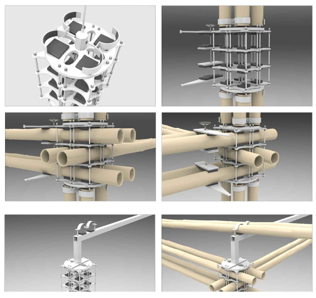 設(shè)計(jì)干式連接,不要通過穿孔削弱竹子,也不要用混凝土填充竹子,還可以根據(jù)需要更換竹桿;