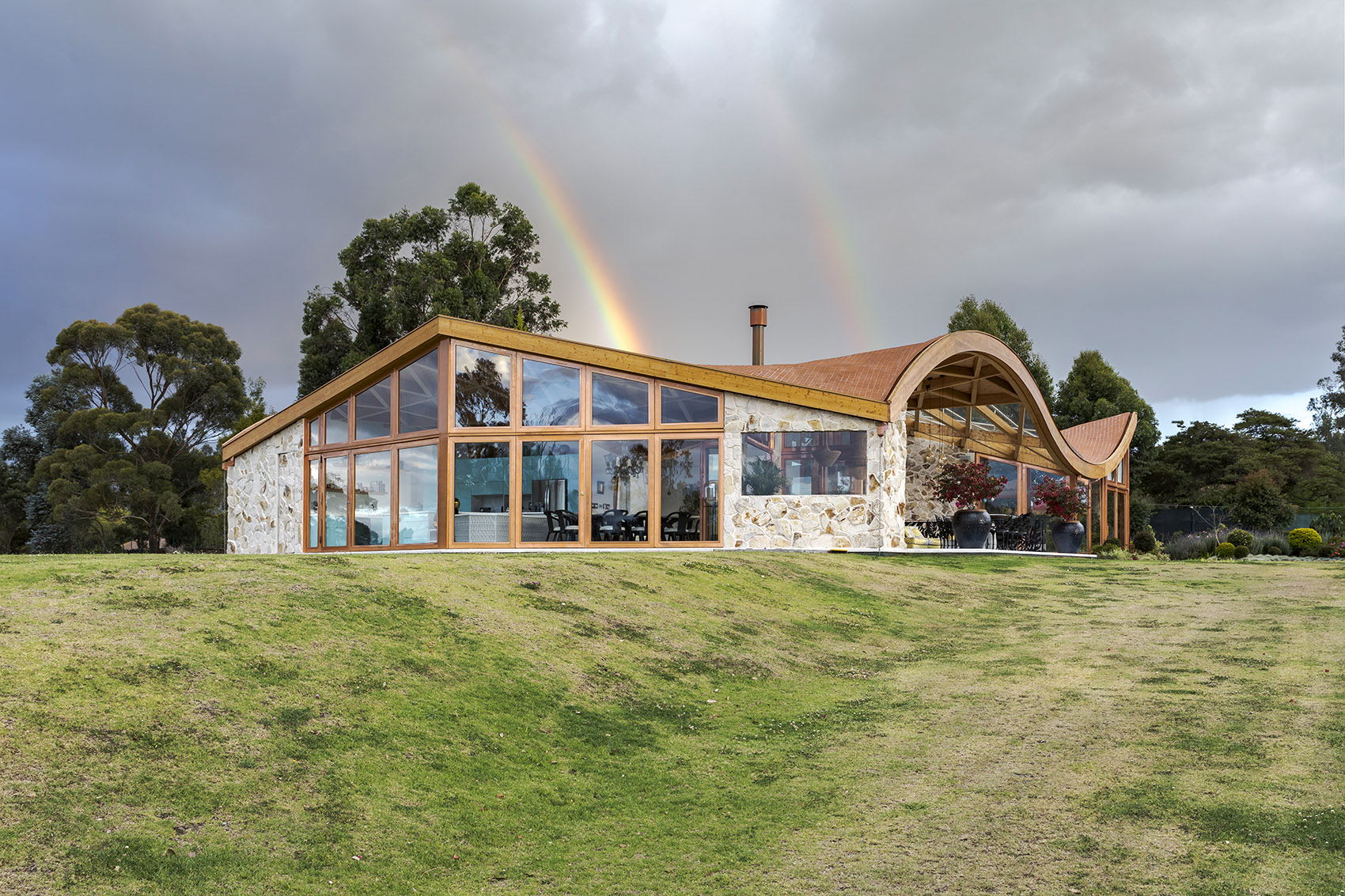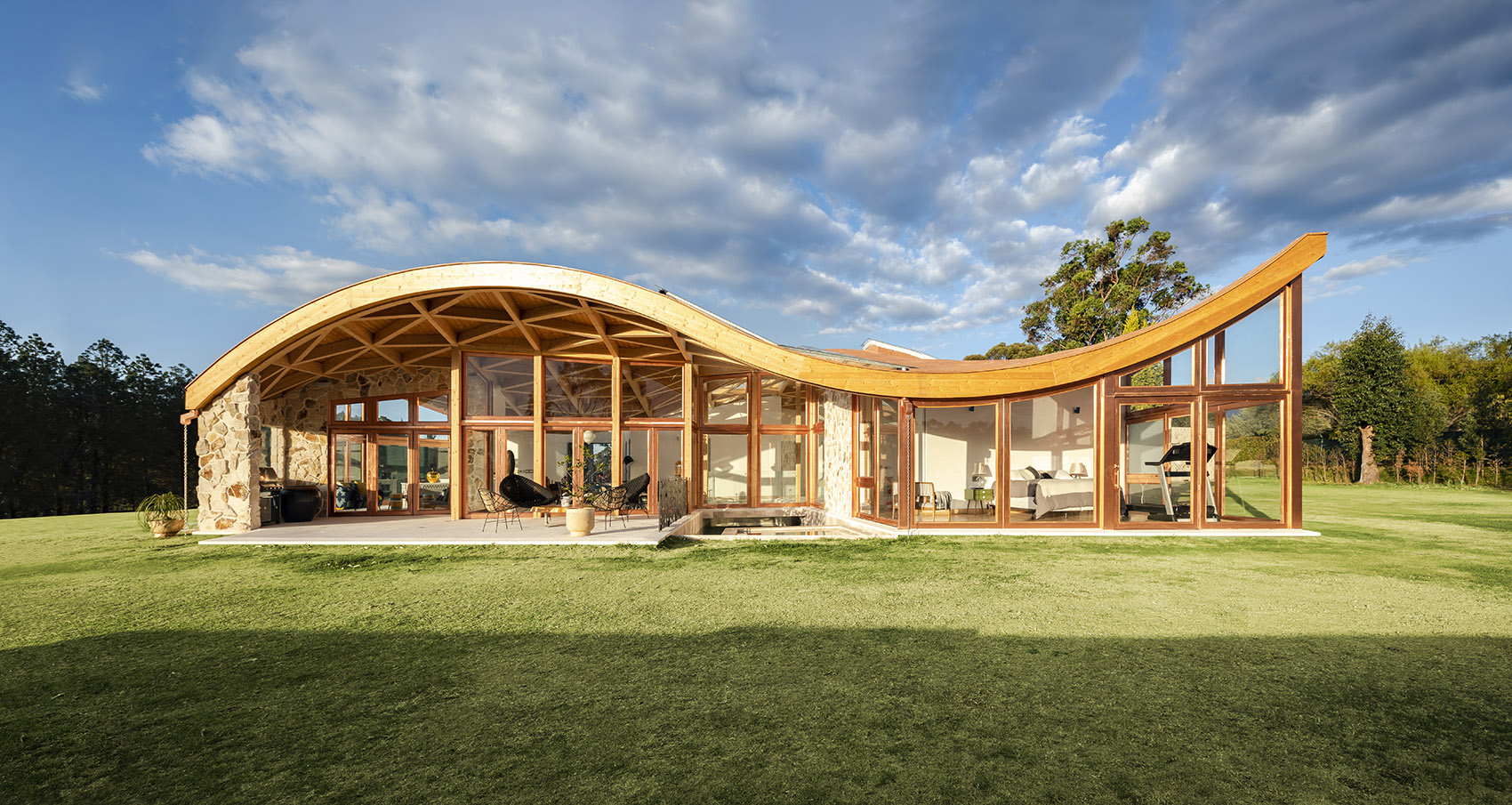 在形式和材料方面,設(shè)計追溯了莊園住宅的根源,以當(dāng)代的建造手法重新詮釋了木材、石材以及粘土等材料,為住宅賦予了輕盈通透的外觀。在概念上,建筑師將住宅構(gòu)想為一道“連續(xù)的波浪”,輕柔地覆蓋并保護(hù)著下方的功能空間。