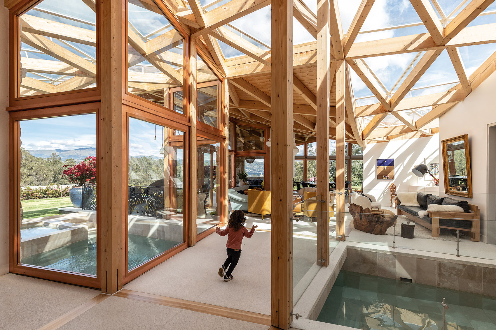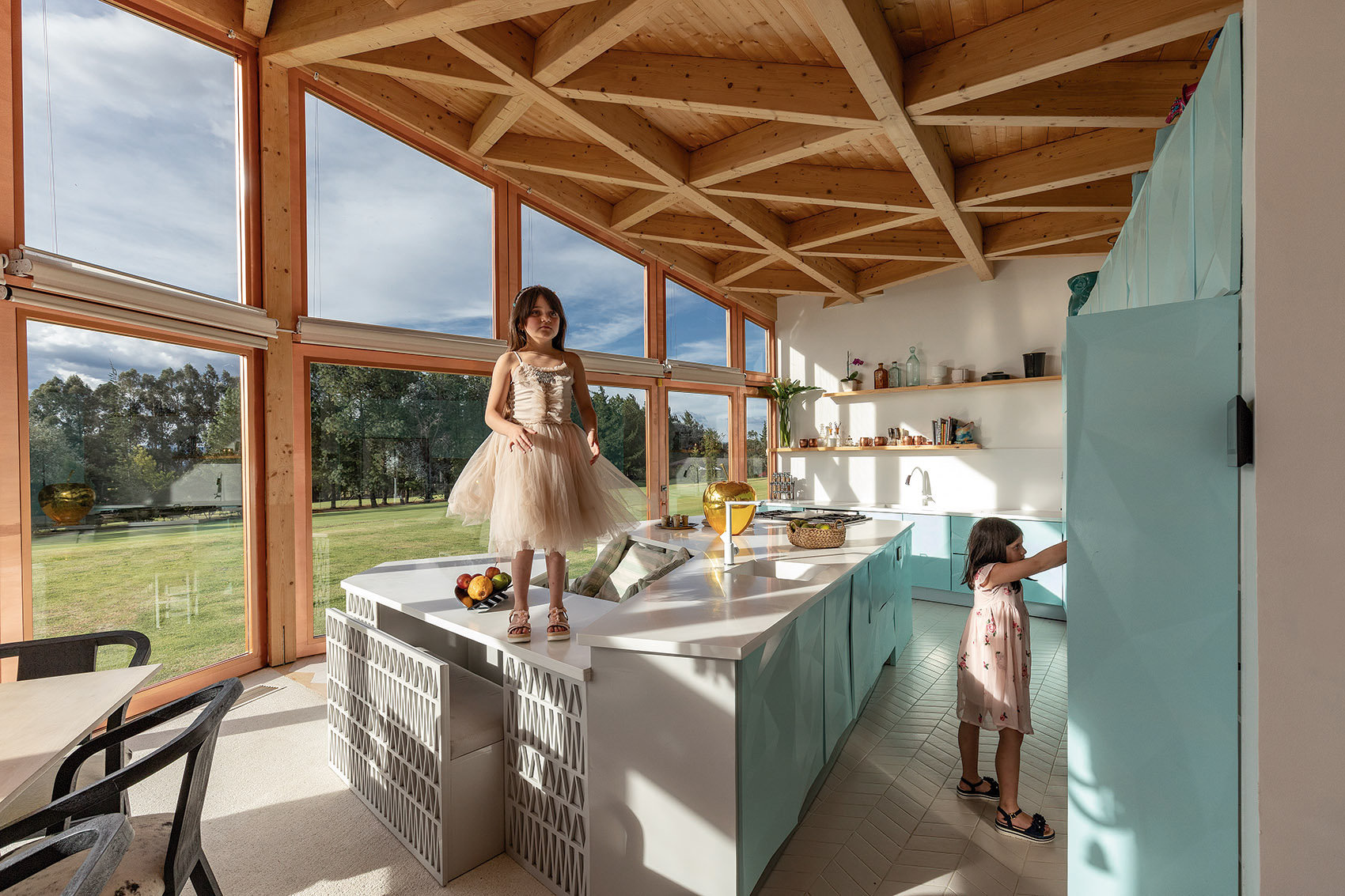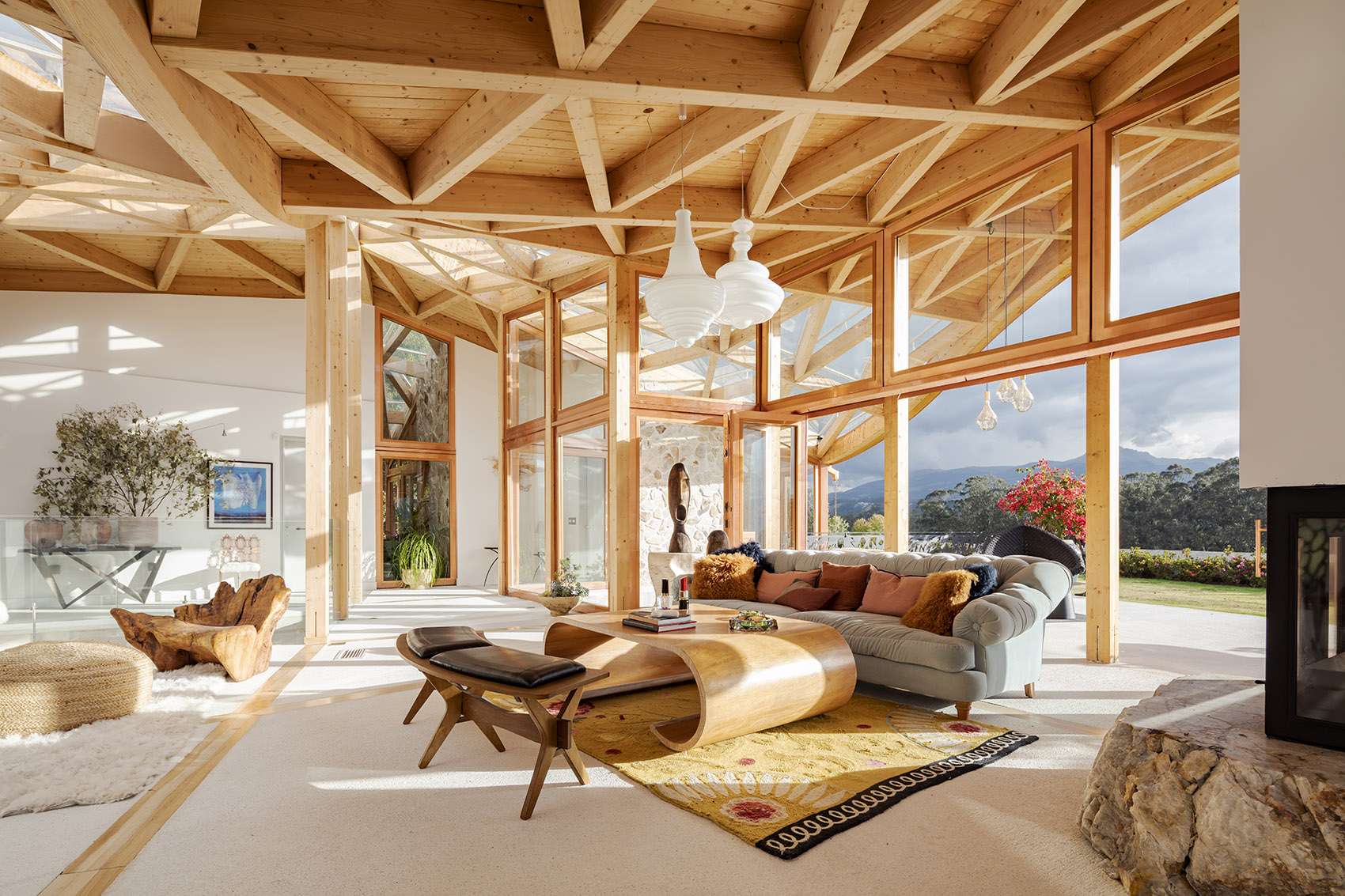 落成后的住宅呈現(xiàn)出石材與玻璃的微妙平衡,充滿活力與溫暖的木結(jié)構(gòu)外觀則將建筑與環(huán)境融為一體。室內(nèi)設(shè)計遵循了最初的概念,以精致的材料與現(xiàn)代化的設(shè)計,平衡并激活了建筑空間。從利用先進(jìn)的制造工藝處理木材,再到結(jié)合本地和國際建造經(jīng)驗,本項目向大眾展示出本地工業(yè)的巨大潛力。這是厄瓜多爾首次實現(xiàn)該類型的建筑,并達(dá)到如此細(xì)致的水平。將數(shù)字技術(shù)與當(dāng)?shù)氐氖止趧蛹夹g(shù)相結(jié)合,不僅創(chuàng)造出獨特的建筑形式,同時也有助于提升該國建造業(yè)的潛力與可能性。